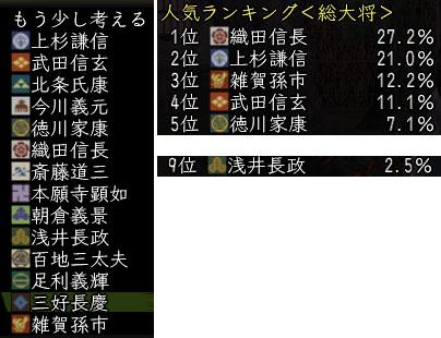 やはり、二大巨頭の信長様と謙信公の一騎打ちですね。