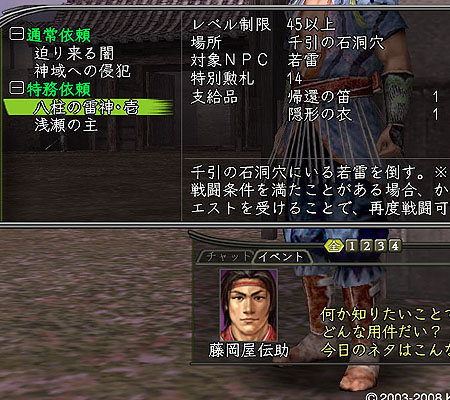 ・八柱の雷神・壱とクエスト名があるが、若さまで壱だとすると、土雷あたりはクエストにでなさそう。