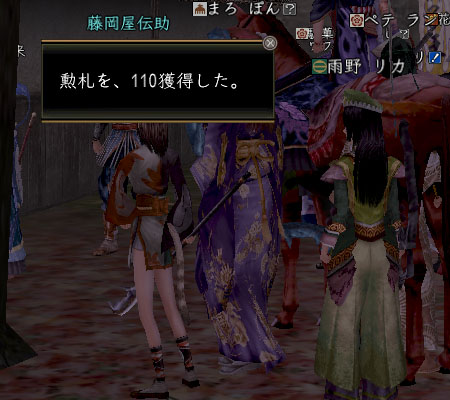 当然ですが、討伐は無事に完了。どこでも笛で帰還し、かわら版屋さんに報告したのですが…。