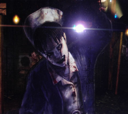 こんな感じに、ベニヤ板のゾンビ看護婦さんが立ててあったり、手術台に掛けられたゾンビの模型があったり、オープンまでの劇場前を盛り上げています。