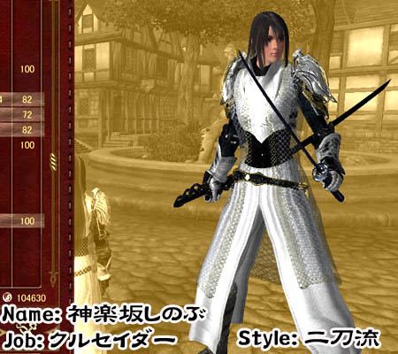 二刀流と見せかけて、実は左手は受け専用(盾と同じ扱い)なあたりが、ビビリの性格をよく表していますね。