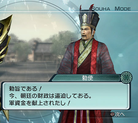 と、ここで飛ぶ鳥を落とす勢いの無双軍を訪ねる勅使がありました。