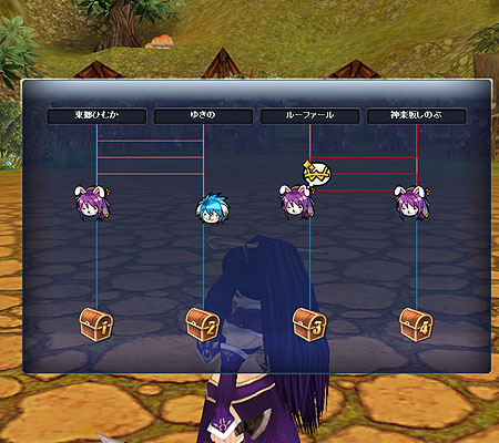 というわけで、お楽しみのボス戦終了後は、なんと収穫品はあみだくじでロット勝負(笑)