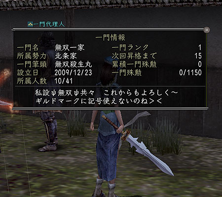 ご覧下さい、キャラクターネームの上に浮かぶ 名門 無双一家の文字!