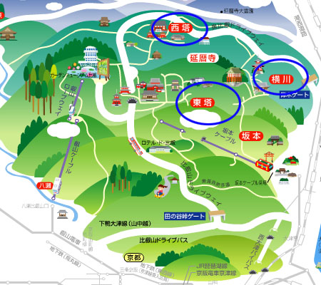 京都側からは、叡山ケーブルと叡山ロープウェイを乗り継いで、山頂を目指します。