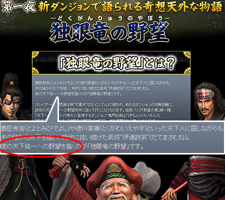 こちらが、コーエー公式サイトにあります、独眼竜の野望の広告カットです。
