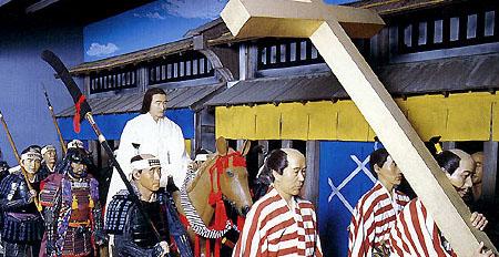 この時、正宗を白装束を着、黄金の十字架を持参して平伏したと言われています。