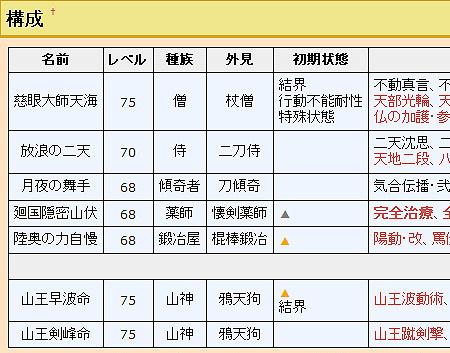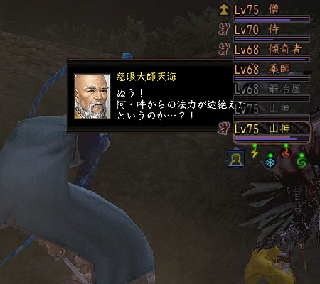 さて、これが天海大僧正の徒党です。もう、ボスが75レベルの時代になってるんですねー。