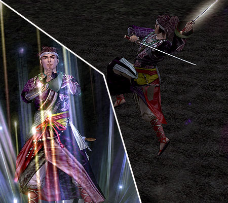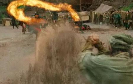 肝心のエレメント戦闘はというと、太極拳のように演舞で気を練ると、その周りに火や水が術者の周りを覆い、パンチやキックと共に飛び道具として攻撃、みたいな感じです。