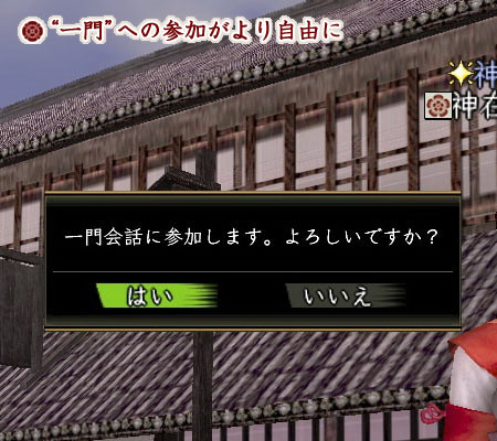 一門会話にもメニューから参加が自由になります。