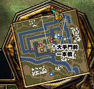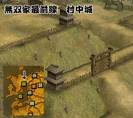 本陣から、ぐるっと大回りし、大手門前の一本橋前に布陣する無双軍。