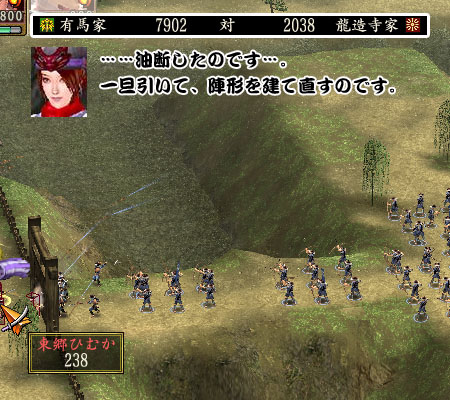 ともあれこの奇襲で、配下の半分を討たれたふぁーさん、一旦 戦線を下げます。