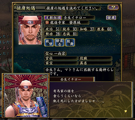 ごく普通に武将となるのですが、基本的には残念な能力値になることが多いです。