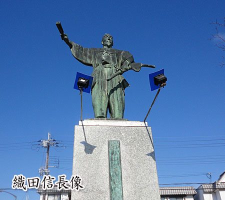 駅舎の正面にあるのが、織田信長像。