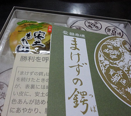 まけずの鍔は、信長の熱田神宮の永楽銭エピソードをモチーフにした、お菓子です。