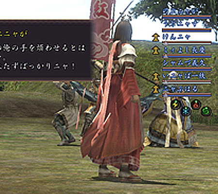 背中の旗と、屋敷の旗と視覚効果ってところでしょうか。