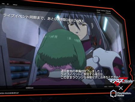 席に座ってくつろいでいると、目の前の中空に投影された巨大スクリーンでマクロスFの