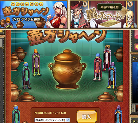 ウェブサイトの公式ホームページからは、強力な武具があたる(かもしれない)1回百円の