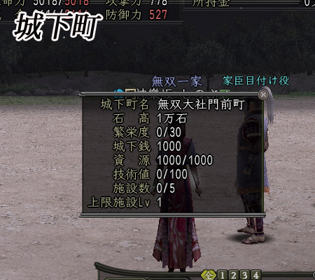 家臣は、城下町にいるNPCより登用や育成を行い、城下町の施設で装備品を買い与えて