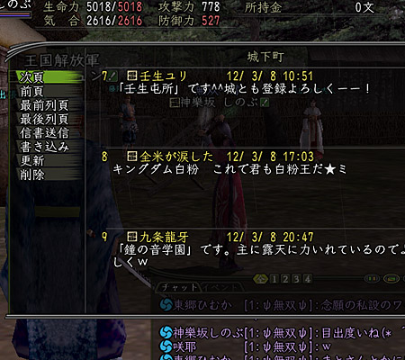 現在、一門掲示板におきまして、一家メンバーの『城下町名』を投稿する記事があります。