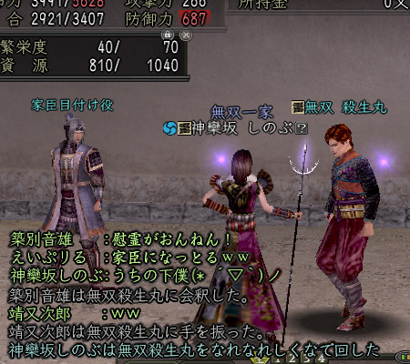 続いて、引率NPCの育成 家臣システムです。