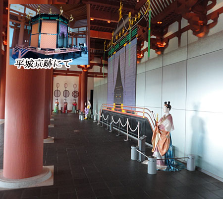 その頃の建造物とかが展示されています。フロアの片隅には、平城京の中心の宮殿、