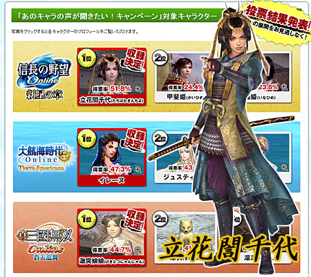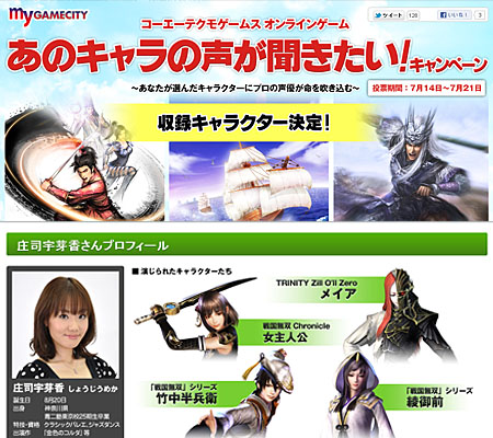 各オンラインゲームで、一番得票数が多かったキャラクターに庄司さんの声が
