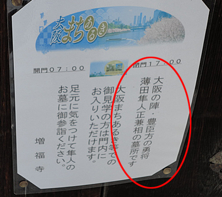 ここは大坂の人で、後藤又兵衛と共に勇戦した薄田隼人兼相のお墓があります。