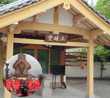 お猿さんは、見ての通り、見ざる・言わざる・聞かざるのお猿さんです。