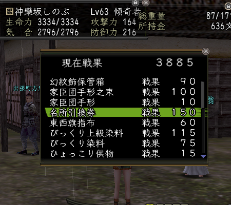 武将戦にあちこと連れていってもらえたおかげで、一人頭約3000ポイントが堪っていました。