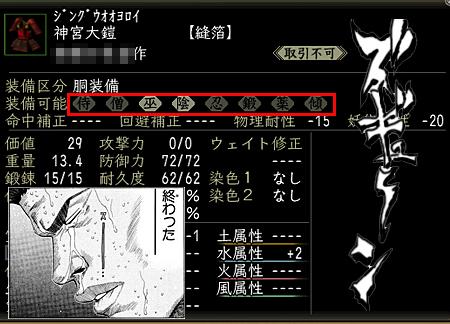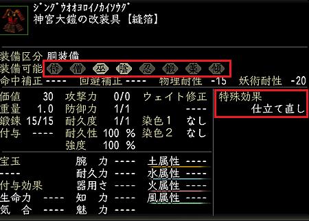 前回の記事の通り、仕立て直し効果はともかく、装備可能職にチェックが入っているという