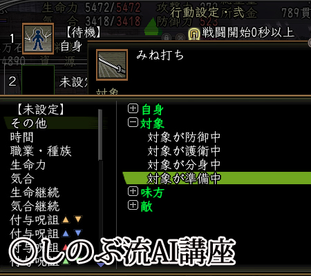 準備中の敵が居る場合、峰打ちで止めにかかるという行動になりますね。