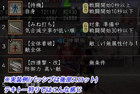 また、自身の生命力70%以下を設定。これにより、横削りで徒党全体に被害が出ているかの
