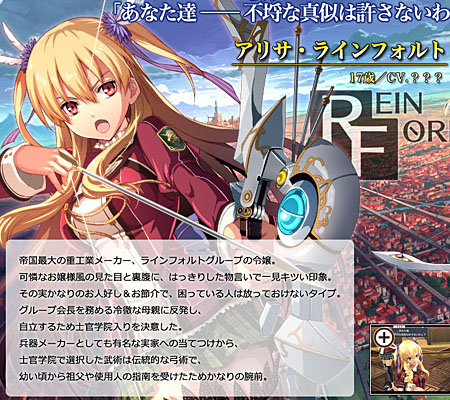 ヒロインのかたっぽ、アリサ・ラインフォルト嬢。