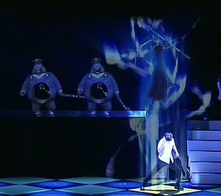 映写し、それに合わせて役者さんが演技するという形になっています。