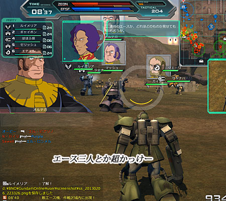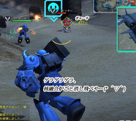 やがて、あたしがオンラインになったことに気づいて、いそそとジオン軍で