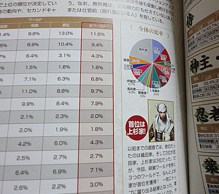 なんと、全プレイヤーの11%が戦闘大国上杉家を選択しています。